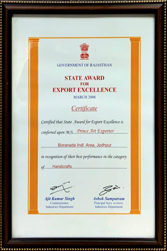 Prince Art Exporter is a family-owned business established in 1959 in Jodhpur, India. Founded by Mr. Manak Chand Luniya, who started the company from his courtyard, it has since grown into a leading name in the furniture industry. Guided by their father’s motivational words, “Get Inspired, Think Big and Take Action” his three sons—Rajendra, Mahaveer and Narendra—have worked diligently to uphold and expand the company’s legacy. Now, the third generation continues this tradition of excellence.